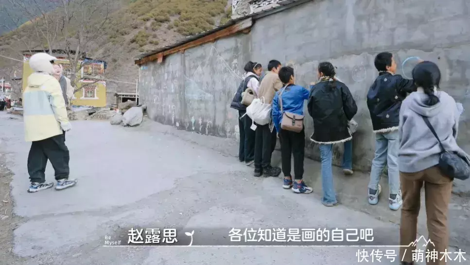 ——赵露思和甘孜小伙伴在涂鸦墙上画自画像,笑闹之间愈发亲近。