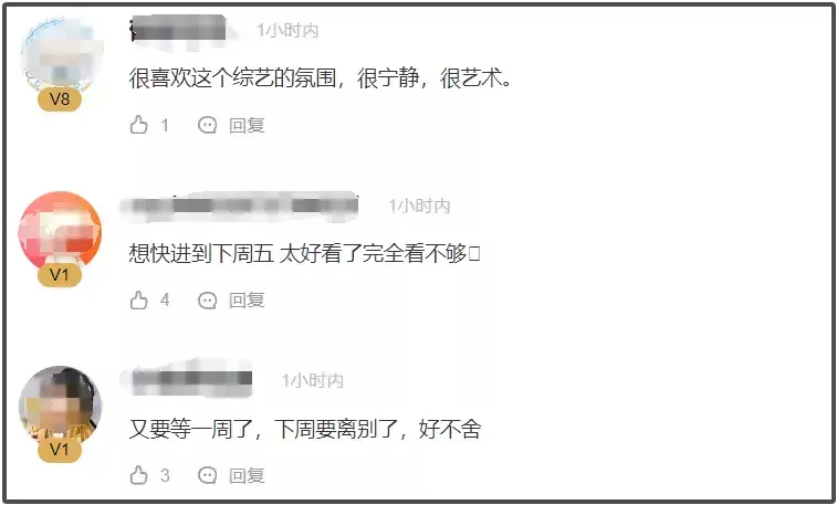 观众纷纷表示很喜欢《小小的勇气》的氛围,很宁静、很艺术,很想快进到下周五观看下一期,但是想到下一期节目要面临离别,又开始觉得不舍了起来。